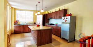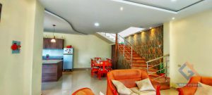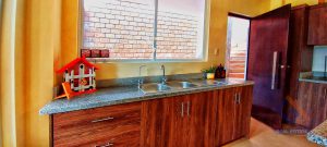 Primer piso: Cocina con muebles empotrados, sala comedor y baño,