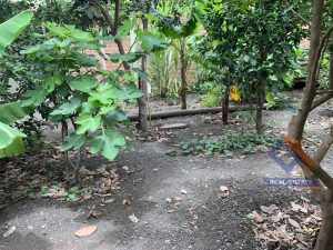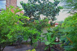 garaje, patio posterior con árboles frutales